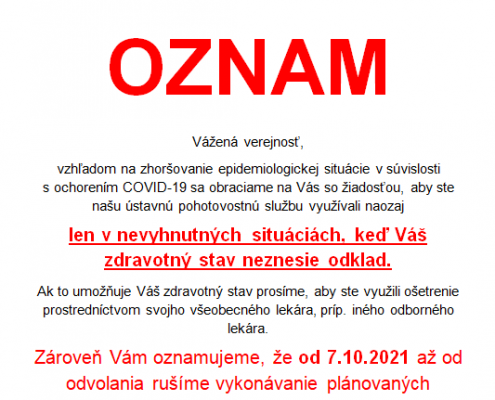 Oznam o poskytovaní neodkladnej zdravotnej starostlivosti…